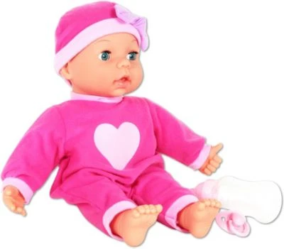 Diese zauberhafte, interaktive Puppe von AMIA bietet mit ihren zehn realistischen Babylauten ein authentisches Spielerlebnis und ist zugleich besonders niedlich anzusehen. Neben Lauten wie Schmatzen oder Weinen kann die Puppe auch die Melodie des Liedes „Bruder Jakob“ abspielen. Dabei trägt sie eine Mütze mit hübscher Schleife sowie einen Strampler mit einem Herzchen auf der Vorderseite.