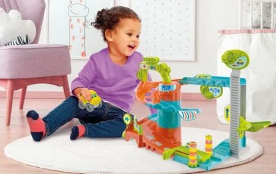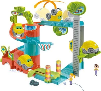 Dieses tolle Baby-Parkhaus von Clementoni bietet Ihrem kleinen Schatz besonders viele Spielmöglichkeiten! Das Parkhaus mit integrierter Rennstrecke kommt mit einem tollen Spielzeugauto, das coole Flips machen kann und die Strecke flott entlangflitzt. Ist das Auto unten angekommen, kann es in der Waschanlage gereinigt werden oder mit dem Aufzug wieder nach oben fahren.