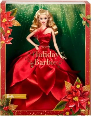 Jetzt ist die perfekte Zeit, um herzerwärmende Erinnerungen zu teilen, sammeln und schaffen, die ein Leben lang erhalten bleiben. Die 2022 Barbie Signature Holiday Puppe ist ein tolles Beispiel für die weihnachtliche Stimmung. Sie trägt ein strahlend rotes Kleid, das an einen wunderschönen Weihnachtsstern erinnert – ein Symbol, das für guten Willen und Gemeinschaftsgefühl steht. Am Kragen des Kleids sind glitzernde Weihnachtssterne abgebildet. Der lange Rock besteht aus einer Lage aus Tüll und seidigen Blättern. Passend dazu trägt Barbie farblich abgestimmte Pumps und eine prachtvolle Lockenfrisur. Wunderschöne goldfarbene Ohrringe und rote Lippen vervollständigen ihren Look. Die Verpackung eignet sich besonders zum Ausstellen dieser 2022 Holiday Barbie-Sammler*innenpuppe und macht sie zu einem tollen Geschenk für Erwachsene und Kinder ab 6 Jahren. Ein Puppenständer (die Puppe kann nicht von allein stehen) sowie ein Echtheitszertifikat sind enthalten. Abweichungen in Farbe und Gestaltung vorbehalten.