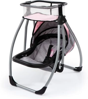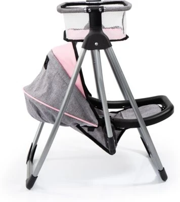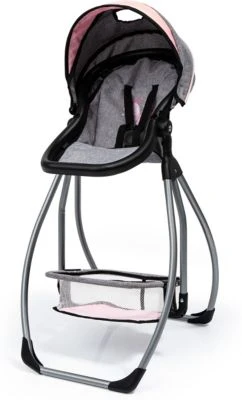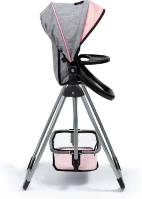 Dieser moderne Puppenhochstuhl bietet vielfältige Spielmöglichkeiten. Er kann sowohl in aufrechter Position zum Füttern der Puppe genutzt werden als auch in Liegeposition umgestellt werden. Durch das enthaltene Essenstablett kann die Puppe zudem bequem gefüttert werden. Im mitgelieferten Korb können alle notwendigen Spielutensilien gelagert werden. Der Hochstuhlsitz kann herausgenommen werden und anstelle des Korbes platziert werden, sodass man im Handumdrehen eine Puppenschaukel erhält.