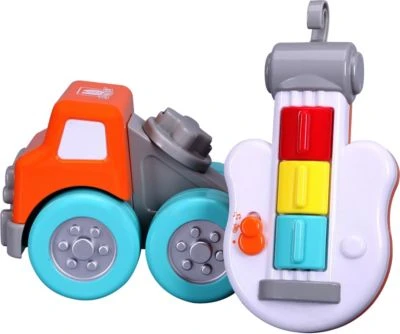 Der „Drive‘ N Rock Tow Truck with Guitar“ von BBJunior ist ein farbenfroher Abschleppwagen mit einer abnehmbaren Gitarre. Die Gitarre verfügt über 2 verschiedene Spielmodi, bereits voreingestellte Melodien oder eine freie Spielvariante. Mit diesem „Drive N Rock“ Fahrzeug bringen Sie Rock ‚N Roll in die Zimmer Ihrer Kinder und lernen Ihnen nicht nur Musik zu spielen, sondern fördern zugleich auch noch ihre Hand-Augen-Koordination. Der Truck ist geeignet für Kinder im Alter von 12 – 36 Monaten.