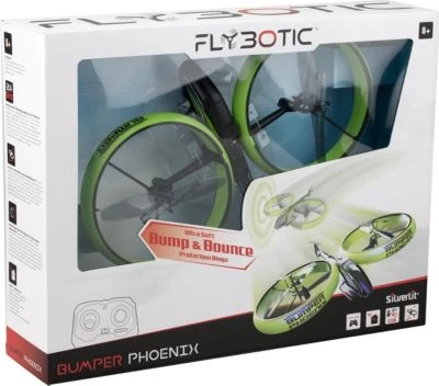 Für coole Flugmanöver drinnen und draußen kommt hier der „Bumper Phoenix“. Das Hightech-Fluggerät überzeugt mit einem urbanen Design und ist ein richtiger Hingucker. Dank der beiden Bumper-Rotoren hat der Phoenix eine stabile und elegante Flughaltung und die Schutzringe sorgen bei Stürzen dafür, dass die Rotoren ganz bleiben. Gesteuert wird über die störungsfreie 2,4-GHz Fernsteuerung, die leicht zu bedienen ist und gut in der Hand liegt.