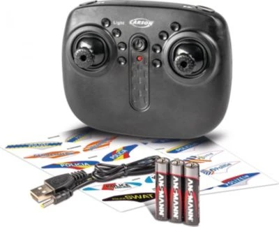 Der Police Tyrann 230 Gyro wird inklusive eines Dekorbogens geliefert. Diese Aufkleber ermöglichen es, den Helikopter nach eigenen Wünschen selbst zu gestalten. Somit wird jeder Helikopter einzigartig! Dank der intelligenten Kreisel-Elektronik und der perfekten Flugeigenschaften lässt sich der Heli einfach und sicher steuern und ist somit perfekt für Einsteiger geeignet. Der Police Tyrann wird über eine 2,4GHz Fernsteueranlage gesteuert und ist dank 100% Lieferumfang nach dem Aufladen sofort startklar. Kaufen – Laden – Fliegen! Viel Spaß mit deinem Police Tyrann 230 Gyro von CARSON.