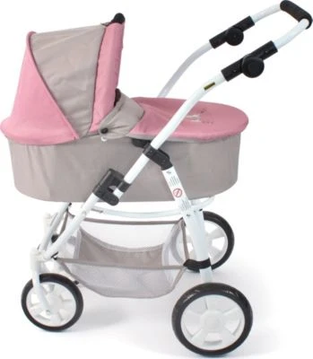 Der topmodische Kombi-Puppenwagen 3 in 1 „Emotion All in“ von CHIC 2000 gleicht den modernen Kinderwagen bis ins letzte Detail und wird so garantiert für viel Spielspaß sorgen! Der trendige Vierräder überzeugt mit seiner 3 in 1 Verwendungsmöglichkeit als Puppenwagen, Sportwagen, herausnehmbarer Wanne sowie einem separatem Autositz. Der Sportwagen ist mit einem 3-Punkt-Sicherheitsgurt ausgestattet und kann sowohl in Fahrtrichtung wie auch mit Blick zu den Puppeneltern verwendet werden. Die Winddecke der Babywanne dient gleichzeitig als Beindecke für den Sportsitz. Kurven fahren wird zum Kinderspiel aufgrund der schwenkbaren Vorderräder. Der Sportsitz und die Babywanne können beidseitig aufgesteckt werden, sowohl in Fahrtrichtung als auch mit Blick zum spielenden Kind. Für noch leichteren Transport kann der Puppenwagen zudem im Handumdrehen zusammengeklappt und sehr stark komprimiert werden. In dem praktischen Gepäcknetz kann Puppenzubehör und Proviant für die Puppe und die Puppeneltern eingepackt werden. Jetzt kann der Spaziergang mit Puppe und Co. beginnen!