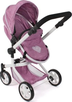 Der Kombi-Puppenwagen MIKA steht einem echten Kinderwagen in nichts nach! Er ist mit einer Babywanne ausgestattet, die sich mit wenigen Handgriffen in einen Sportsitz verwandeln lässt. Der Windschutz der Tragewanne kann auch als Beindecke für den Sportwagen verwendet werden. Aber MIKA kann noch mehr: Wie bei echten Kinderwägen sind auch hier die Vorderräder schwenkbar, es gibt einen Sicherheitsbügel und der Sportwagensitz ist sogar umsetzbar! So kann die Puppenmama wählen, ob ihr kleiner Schatz nach vorne oder zu ihr sehen soll. In dem Gepäcknetz unter dem Wagen lassen sich Puppen-Utensilien perfekt verstauen. Natürlich ist der Schieber höhenverstellbar, sodass auch etwas größere Puppenmamas Spaß haben können! Und nach dem Spielen lässt sich der Wagen mit einem Handgriff zusammenklappen und platzsparend verstauen.
