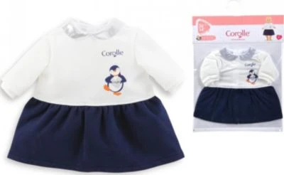 Kleine Puppeneltern werden dieses wundervolle Puppenkleidchen aus der „Corolle Mon“-Kollektion von Simba einfach lieben! Das zweifarbige Kleid begeistert mit einem Kragen und einem süßen Pinguinmotiv. Damit ist die Lieblingspuppe klasse für festliche Anlässe gekleidet!