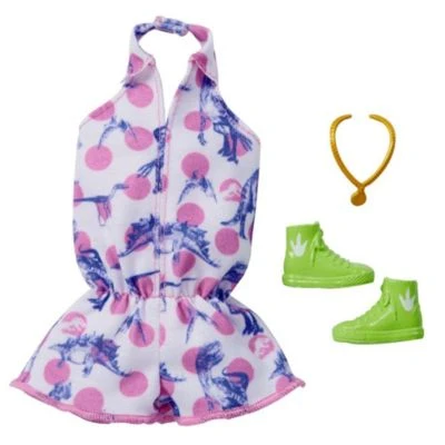 • Kleidung, Mode, Bekleidung, Set fĂĽr Barbie Puppe – Set beinhaltet: 1 Garderoben Set (1 Kleid mit Dinosaurier Print, 1 Paar Sneaker, 1 Kette)