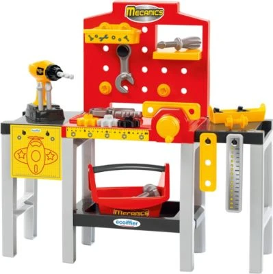 Die modulare Werkbank von Ecoiffier hat alles was ein kleiner Handwerker braucht. Damit es nach dem Spielen zu keinem Chaos kommt, ist die Werkbank mit ausreichen Stauraum versehen. Hiermit können sich schon die Kleinsten spielerisch handwerklich betätigen und unterschiedliches Werkzeug kennen lernen. Die Werkzeuge sind leicht und wurden für kleine Hände hergestellt. Die Werkbank verfügt über eine geräumige Arbeitsplatte und zahlreichem Zubehör, wie z.B. Akkuscharuber, Schraubenzieher, Hammer, Zange, Schrauben und vielem mehr.