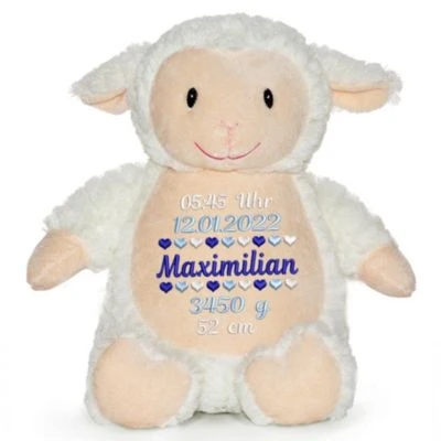 • Die personalisierte Stickerei erfolgt auf den Bauch des Schafs und macht das Kuscheltier zum Unikat