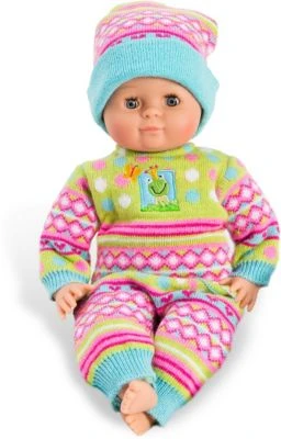 In diesem Strickstrampler fühlen sich Puppenbabys mollig warm und pudelwohl.