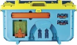 Kinder lieben die coolen „Hot Wheels“-Rennstrecken und können sich endlos damit beschäftigen! In diesem umfangreichen Set von Mattel sind gleich dreißig Trackteile enthalten, mit denen sich drei besonders krasse Rennstrecken zusammensetzen lassen. Hier gibt es spannende Doppel-Loopings, eine Rampe, scharfe Kurven und vieles mehr zu entdecken. Bis zu vier Fahrzeuge können gleichzeitig um die Wette sausen! Damit der Spaß sofort beginnen kann, ist auch schon ein Auto mit dabei. Sind die Kinder fertig mit Spielen, können sie alle Schienenelemente, Autos und mehr in der praktischen Aufbewahrungsbox mit Fächern verstauen, sodass das Kinderzimmer stets ordentlich aufgeräumt ist.