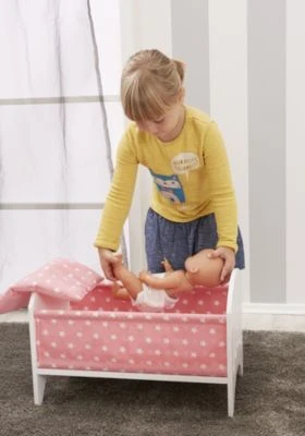Maße Puppenbett: Höhe: 35 cm Breite: 30 cm, Tiefe: 53 cm