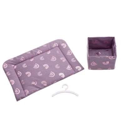 Auf dem Wickeltisch können die Puppenmamas ihre Lieblinge auf der gepolsterten Wickelauflage wickeln. Utensilien und Kleidung für die Puppen werden im passenden Korb, im Regalfach oder auf dem Kleiderbügel verstaut.