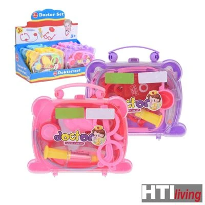 Arztkoffer mit 6-teiligem Zubehör für den kleinen Puppendoktor. Koffer beinhaltet Stethoskop, Spritze, Thermometer, Transfusionsbeutel, Brille und Krankenschwester-Haube. In 4 Farben, Farbe nicht frei wählbar, geliefert wird ein Koffer mit Zubehör, Lieferung erfolgt nach dem Zufallsprinzip. Maße Koffer 18 x 17 x 5 cm