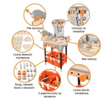 • Es ist mehr als eine Werkstatt – das Kind kann einen echten Konstrukteur spielen! Baue Roboter, Brücken, Häuser und viel mehr! Dank den vielen zusätzlichen Elementen kann das Kind endlos spielen