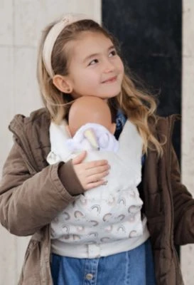 Die Manduca Puppentrage für Kinder eignet sich zum Tragen von Babypuppen vorne und auf dem Rücken. Die einzige Babytrage von Manduca, in der auch mit dem Gesicht nach außen getragen werden kann! Cleverer Innen-Sitz: Die Puppe kann vorab in zwei Trageschlaufen gesetzt und (meist) ohne Hilfe angelegt werden. Die Trage ist passend für Stoffpuppen, Teddys, Weichkörper-/Vinyl-und Silikon-Puppen jeder Größe. Das ergonomisches Design überzeugt mit leicht gebogenen Schultergurten, die nicht von den Schultern rutschen. Die leicht zu öffnenden Schnallen sind für kleine Kinderhände prima geeignet. Der Hüftgurt (ca. 38-80 cm) kann in sich selbst verstaut und die Trage wie ein Kinder-Rucksack angezogen werden. In der aufgesetzten Stofftasche kann Puppen-Zubehör verstaut werden. Mit dieser Puppentrage können die Kinder ihren kleinen Liebling tragen, so wie sie es bei den Erwachsenen sehen!