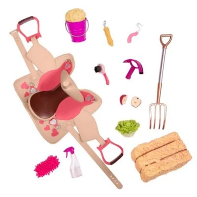 Um ihre vierbeinigen Freunde kümmern sich deine Puppen von Our Generation immer ganz besonders liebevoll. Mit diesem tollen Stall schenken sie ihren Pferden ein wundervolles neues Zuhause! Das Tor der Box lässt sich ganz einfach öffnen und schließen, damit die Pferde auch immer genug Auslauf bekommen. Ihr könnt sie striegeln und füttern, und natürlich gehört auch das Ausmisten dazu. Aber am schönsten ist es, wenn ihr euch in den Sattel schwingt und zusammen ausreitet. Nirgends ist es schöner als auf dem Rücken der Pferde!