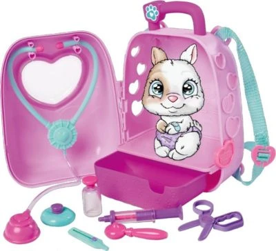 Der Pamper Petz 2in1 Rucksack und Tierarztkoffer von Simba stattet kleine Nachwuchs-Tierärzte ab drei Jahren optimal aus. Er enthält Zubehör für die Behandlung eines Kuscheltiers und kann außerdem als Transportrucksack für Plüsch-Freunde verwendet werden. Pamper Petz 2in1 Rucksack und Tierarztkoffer von Simba 7-tlg. Zubehör, Pflaster und Stickerbogen, inkl. Knopfzellen (2 x LR44) herausnehmbare, als Behandlungstisch und Schlafplatz verwendbare Schublade aus Kunststoff ab 3 Jahren geeignet Der Pamper Petz Backpack setzt auf ein cooles Rucksack-Design. Er enthält Utensilien wie ein Stethoskop, ein Fieberthermometer, Pflaster und eine Spritze bereit, um Kuscheltiere zu behandeln. Die herausnehmbare Schublade kann als Behandlungstisch oder Schlafplatz des Patienten dienen. Der Rucksack selbst eignet sich als Transportbox, in der der Nachwuchs seine Kuscheltiere überallhin mitnehmen kann. Das Spielzeug wird inklusive eines Stickerbogens geliefert. Mit ihm können die Kids den Doktorkoffer individuell verschönern.
