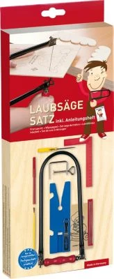 Dieses Starterset hat alles, was man für den Anfang braucht. Sogar eine Vorlage ist schon dabei und kann mit dem Pinsel direkt bemalt werden. Inhalt: Laubsäge, Brettchen mit Einspannhalterung, Zwinge, Blätter, Schlüssel, Holzvorlage DIN A5, Ahle, Winkel, Pinsel, Filzstift.