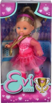 „Evi LOVE“, die kleine Schwester von „Steffi LOVE“, gibt es nun als niedliche Eiskunstläuferin! Die süße Puppe aus dem Hause Simba trägt ein zauberhaftes Kostüm in trendiger Farbe und natürlich mit jeder Menge Tüll. Ihre Schlittschuhe und das Haarband passen farblich natürlich perfekt zum Outfit! So ist Evi bereit für ihren großen Auftritt! Natürlich räumt die talentierte Eiskunstläuferin den ersten Platz ab und gewinnt eine Medaille.