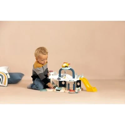 Für kleine Auto-Fans: In der Multi-Garage Little Smoby gibt es für Kinder eine Menge zu entdecken. Das Spielset lädt auf drei Ebenen zum Spielen ein. Rampen, ein Landeplatz, Werkstätten und Schranken bieten jede Menge Abwechslung. Multi-Garage Little von Smoby drei Ebenen, drehbarer Lastenbaufzug, große Fahrrampe, Parkplatz, Absprungrampe, bewegliche Schranken, Hubschrauberlandeplatz, Werkstatt und Waschstraße, inkl. Mini-Flitzer Maße 56(L) x 29(B) x 32(H) cm aus robustem Kunststoff ab 18 Monaten geeignet hergestellt in Frankreich Drei Ebenen pures Spielvergnügen: Der große, drehbare Lastenaufzug bringt die kleinen Fahrzeuge im Nu auf das Parkdeck. Von dort können die Mini-Flitzer über die große Fahrrampe wieder hinunterfahren. Wenn es Deine Kids besonders eilig haben, sorgt die Absprungrampe für den nötigen Schwung. Bewegliche Schranken markieren verbotene Durchfahrten. Die Rampe kann an zwei verschiedenen Stellen befestigt werden. Der Spielspaß geht auf dem Dach weiter: Über dem Parkdeck befindet sich der Hubschrauberlandeplatz. Hier kann der separat erhältliche Mini-Flitzer-Hubschrauber starten und landen. Ganz unten befinden sich die Werkstatt und die Waschstraße: Hier finden die Pflege, Instandhaltung und Reparatur der Mini-Flitzer statt. Breite Fahrrampen und Schranken sorgen für einen geregelten Ablauf. Das Set enthält einen Mini-Flitzer und wurde in Frankreich hergestellt.