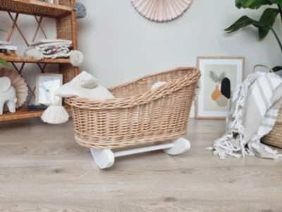 Die Puppenwiege ist aus Weiden höchster Qualität hergestellt. Ihr edles Design lässt Kinderherzen höher schlagen und ist ein tolles Puppenbett.