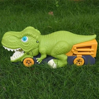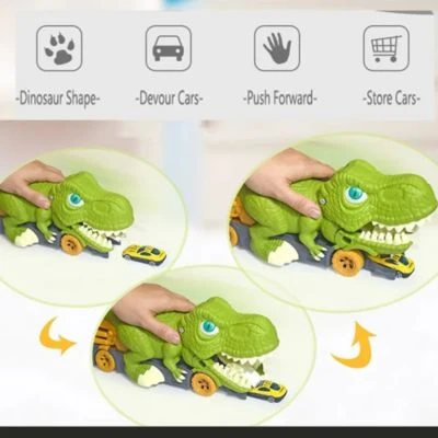 Drücke den Dinosaurier und lehne dich langsam in das Auto. Dinosaurier rollen das Auto in den Mund und schlucken es. Nach dem Verschlucken kann das Auto aus der Hintertür des Dinosauriers rutschen.