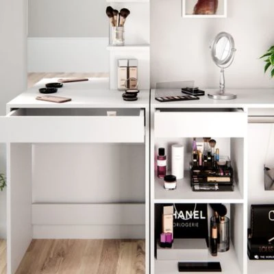 Mit diesem modernen Kosmetiktisch wird die tägliche Schminkroutine zum Vergnügen. Ergänzt mit unseren Schränken können Sie sich Ihre persönliche Beauty-Oase schaffen.