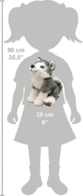 Der Hund in authentischer Haltung ist ca. 20,3×15,2×20,3 cm groß, ganz zutraulich, verschmust und ein treuer Freund und Begleiter für Ihr Kind.